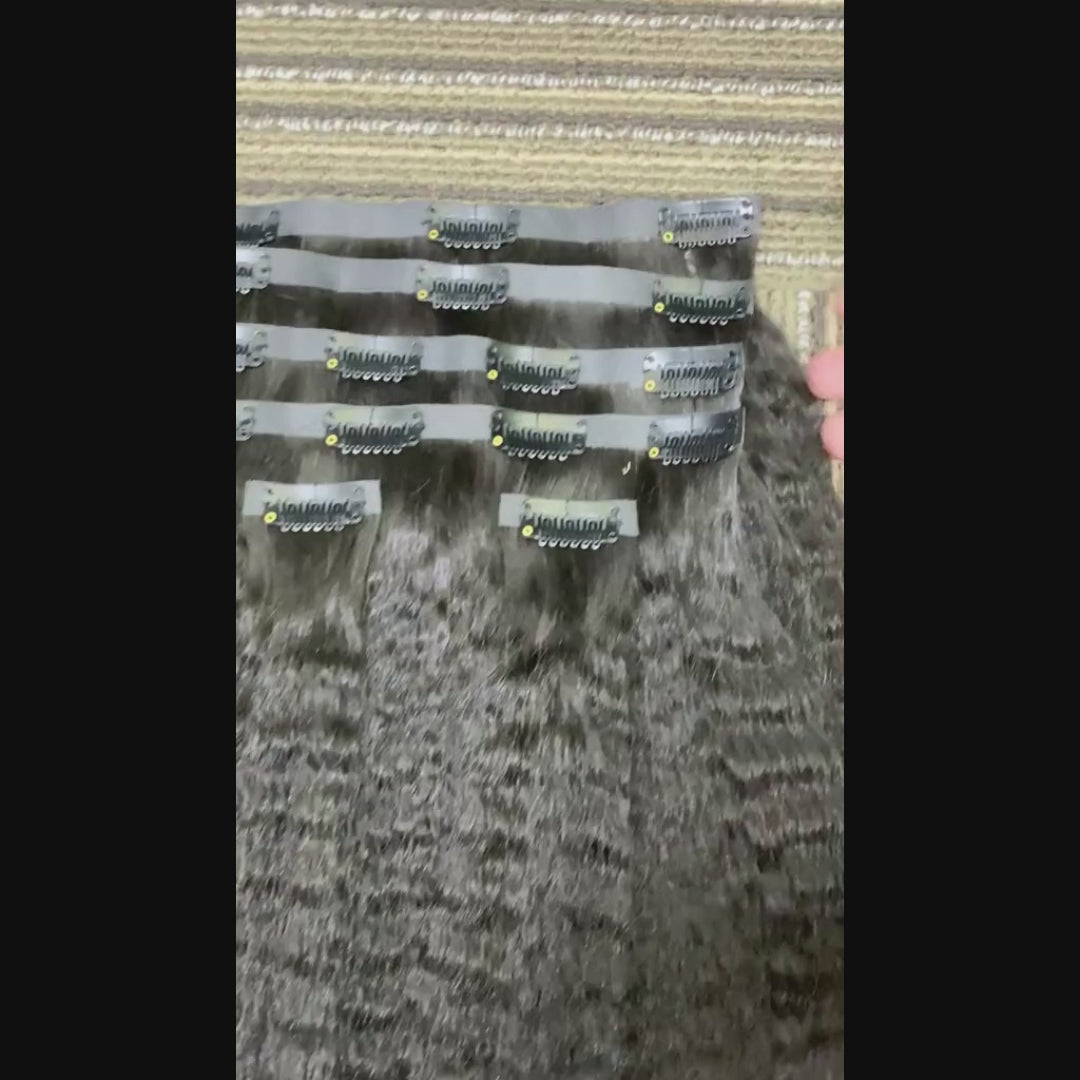 Product Details| Clip in Style | Seamless PU Clip in Kinky Straight Human Hair Extensions Natural BLack |